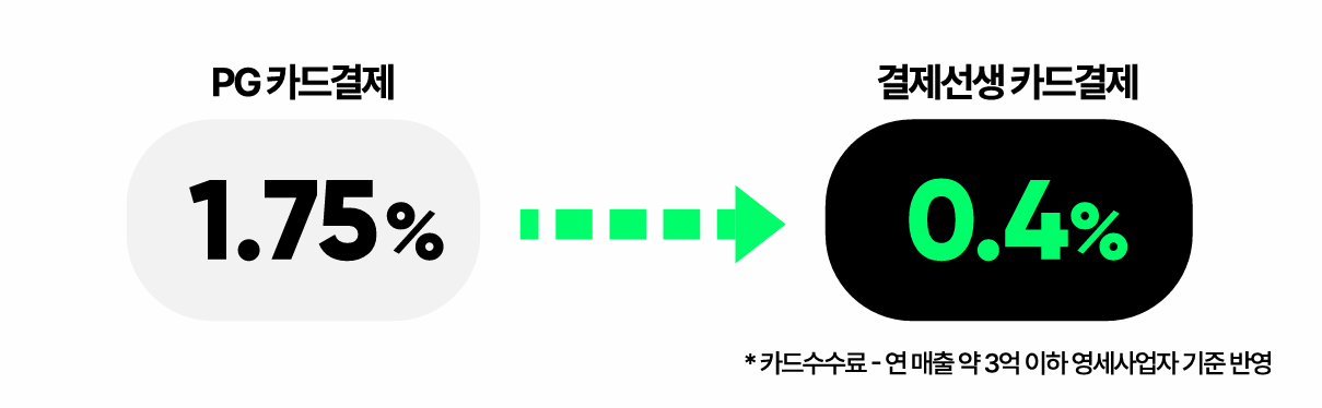 ex) 연매출 3억 원 미만의 영세 사업자 기준 0.4%의 수수료 부과